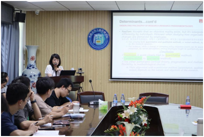 第一场讲座主题为“Blending Perspectives: Uniting Quantitative and Qualitative Approaches in Academic Writing”。路英老师用Chatgpt的出现和使用为引,提出学术写作中联合定量方法和定性方法的必要性。随后,她通过自身经历介绍定量方法和定性方法。在选择研究方法上,路英老师围绕研究问题、研究的基本理论、个人偏好和技能三点展开,强调需根据研究问题去选择研究方法,并以此回答同学对于定量和定性方法先后顺序的疑惑。