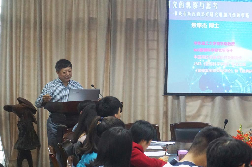 11月20日下午,工商管理学院学术系列讲座第八十一讲在经管609会议室召开。华东理工大学教授景奉杰应邀做“管理研究的观察与思考——兼谈研究热点和论文选题策略”、“华东理工大学商学院博士生项目推介”的主题讲座。