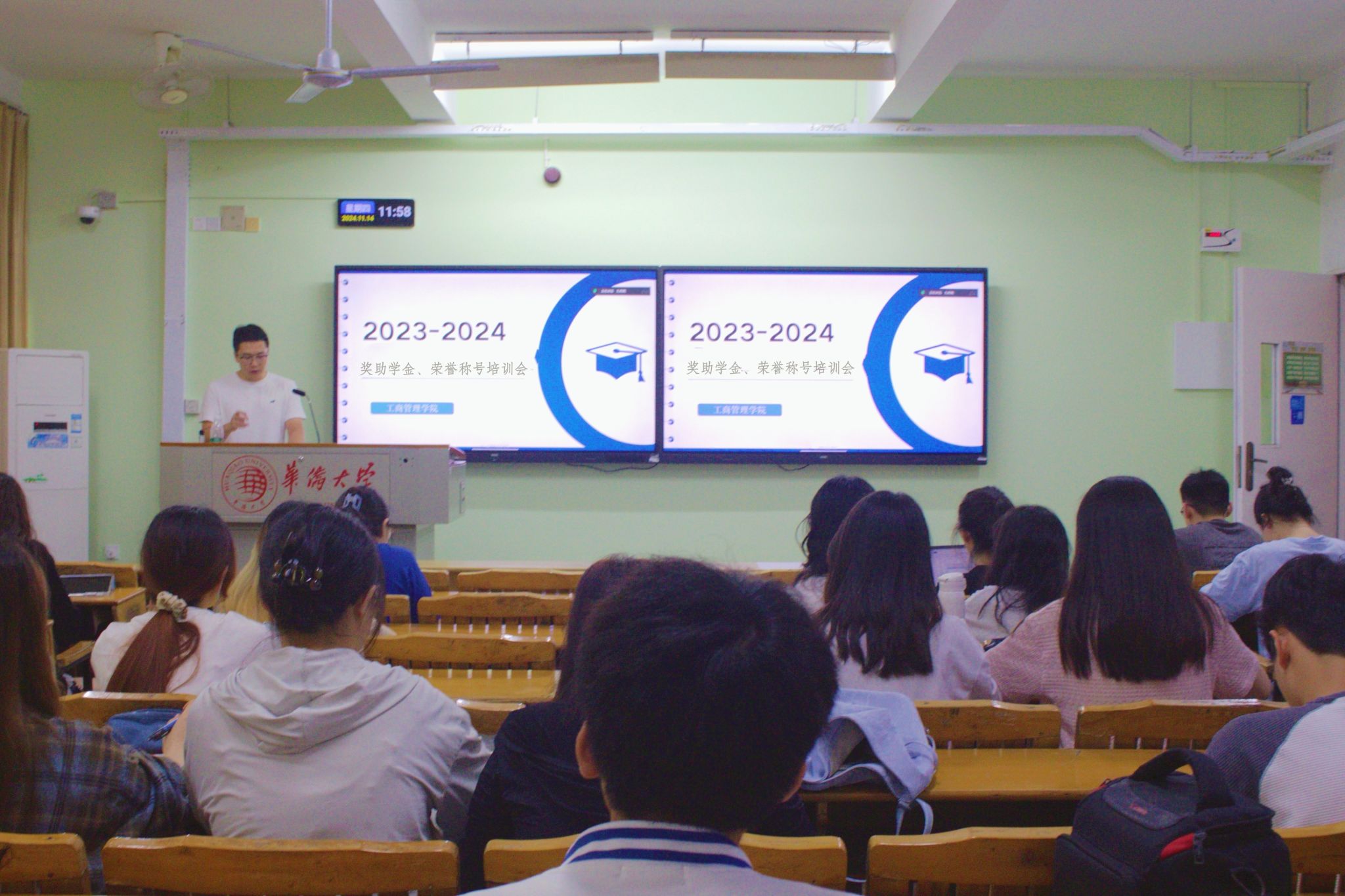 为宣传资助相关政策,充分发挥“资助育人”实效,2024年11月14日中午,工商管理学院在陈守仁经济管理大楼104顺利举办2023-2024学年奖助学金、荣誉称号培训会。辅导员王艺翔、办公室工作人员以及2021级、2022级、2023级的班长和团支书参加了此次会议。