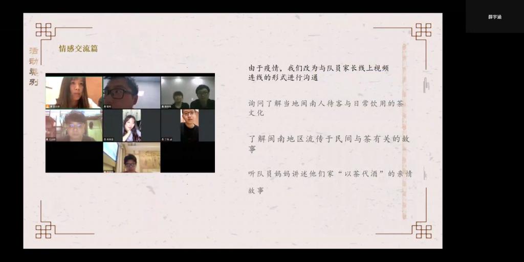 在汇报会上,各个团队代表依次介绍实践活动的过程和收获,并与评委老师们展开热烈的交流与讨论。在团队汇报中,团队通过现场体验、视频分享、连线等方式进行汇报。在此次暑期实践活动中,各个团队通过走访各地家庭,学习当地特色文化,领略当地文化魅力,在相互交流中加深境内外同学对中国家庭文化、中国传统文化的了解。