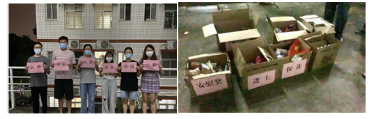 晚上7点,线上博饼大会正式展开。活动全程线上进行:主要包括节日祝福短信、摇骰子博饼等。活动分为两个赛道进行,完成任务者均有机会参与到最终博饼环节。活动结束后,由各同学代表戴好口罩进行奖品领取,并在奖品派发现场做到错峰发放。