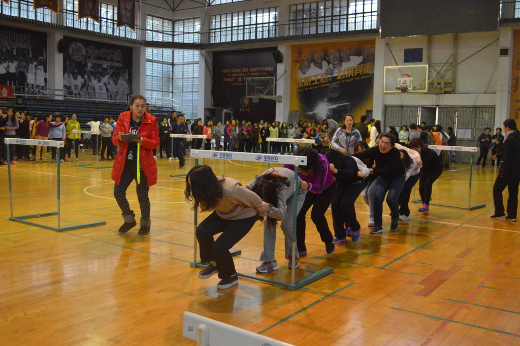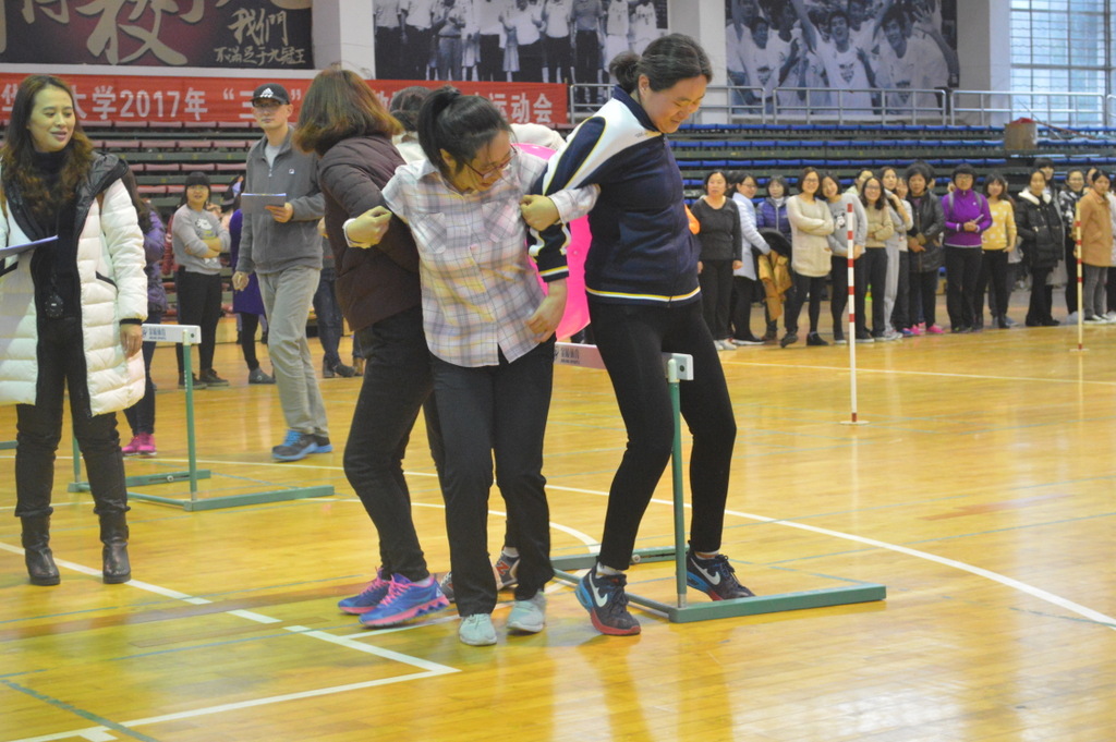 3月7日,华侨大学“三八”节女教职工趣味运动会在李回咤体育馆举行。我院参赛女教职工与其他学院的队伍分别进行呼啦圈过山车、乔装打扮、无敌风火轮、螃蟹背西瓜、同舟共济五个赛事的比拼。