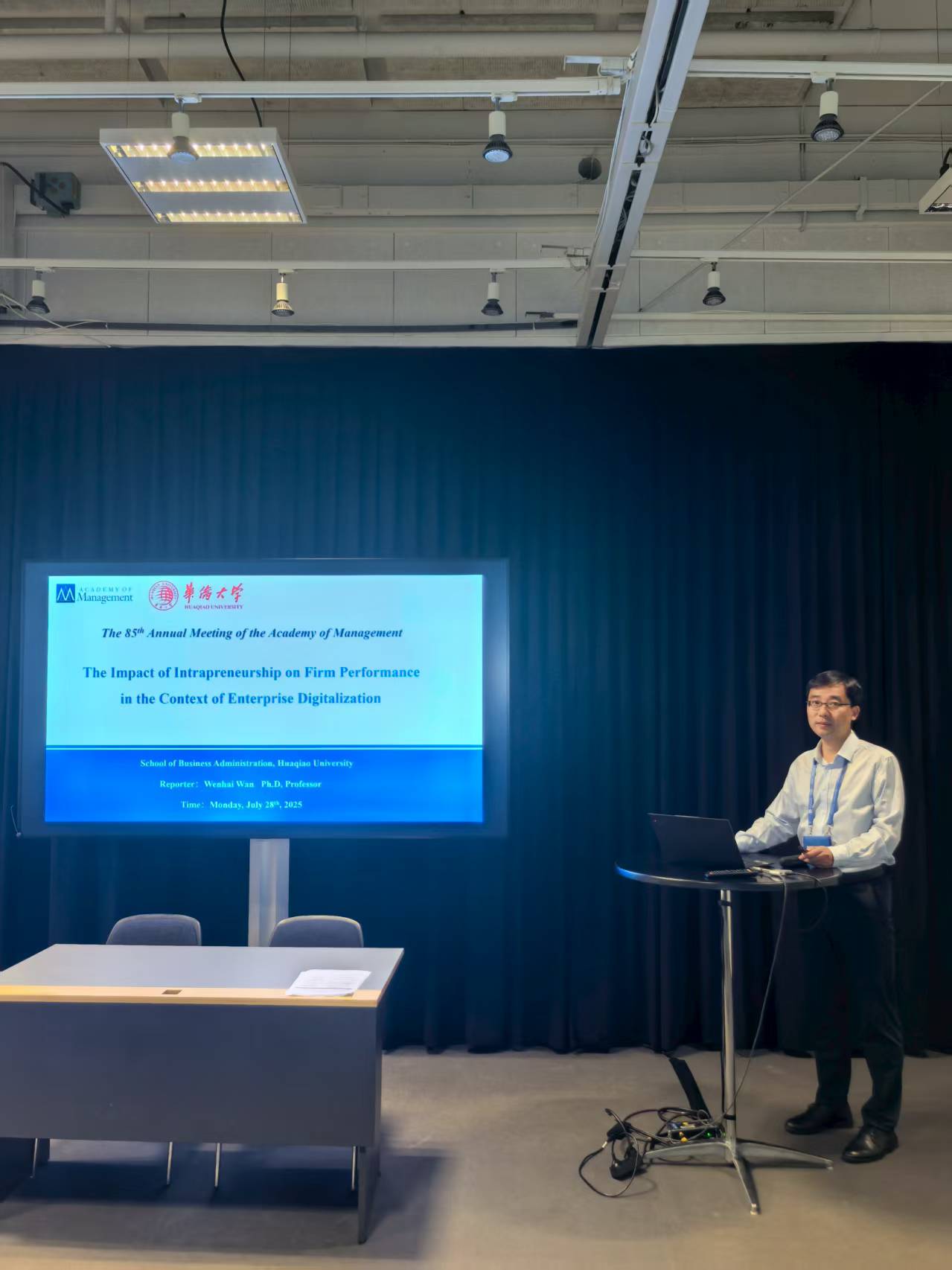 会议期间,三位教师的研究论文均通过大会严格的同行评审并被正式接收,分别在相关分会场进行汇报,展示了我院在数字化转型、人工智能与组织管理交叉研究领域的学术成果与国际视野。其中,万文海教授不仅担任“Creativity and Innovation Meet AI and Digitalization”主题分论坛的主持人,还围绕企业数字化背景下的内部创业行为,汇报题为The Impact of Intrapreneurship on Firm Performance in the Context of Enterprise Digitalization的研究论文,引发现场广泛关注与热烈讨论。