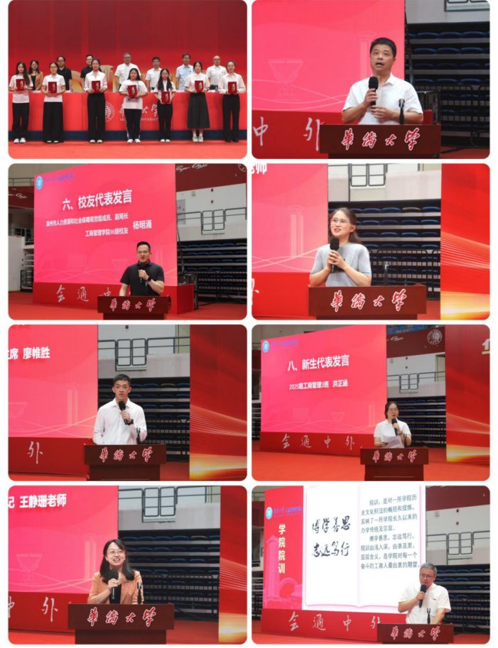 2025级工商管理专业洪芷涵代表全体新生发言,表示自己将秉承“会通中外,并育德才”的校训精神,深耕专业,不负韶华。