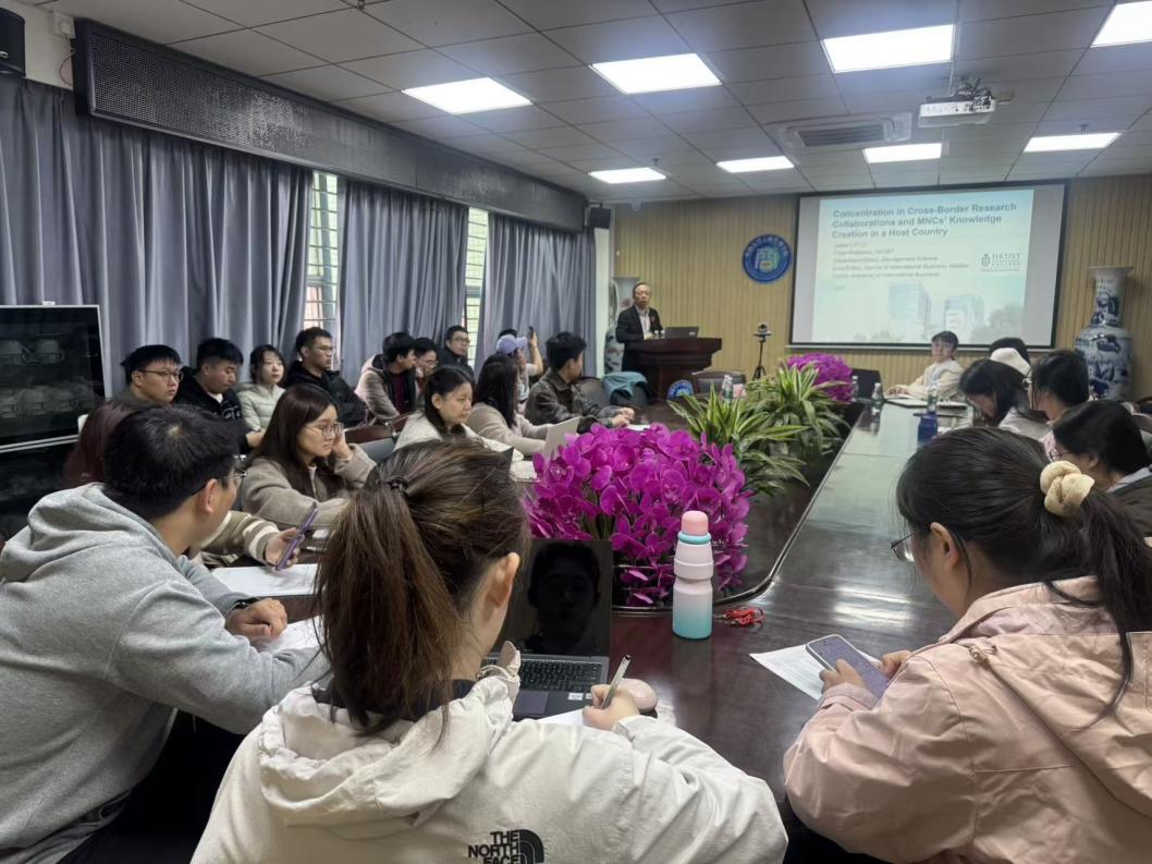 2026年1月15日,工商管理学院学术讲座系列第一百九十三讲在经管楼609顺利举行。香港科技大学李家涛教授以“Concentration in Cross-Border Research Collaborations and MNCs’ Knowledge Creation in a Host Country”和“Publishing in Top International Business Journals: An Emerging Economy Perspective”为题,深度解析跨国公司的知识创造和JIBS期刊征稿内容。工商管理学院院长衣长军教授作嘉宾介绍并致欢迎辞。