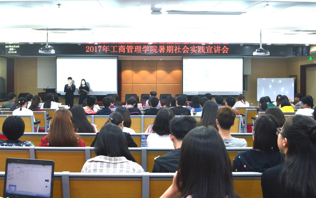 4月24日晚,工商管理学院暑期社会实践宣讲会在经管12楼召开,华侨大学校团委秘书黄炳超,我院辅导员张钟元、王子蔚及往届暑期社会实践优秀团队代表出席本次宣讲会。