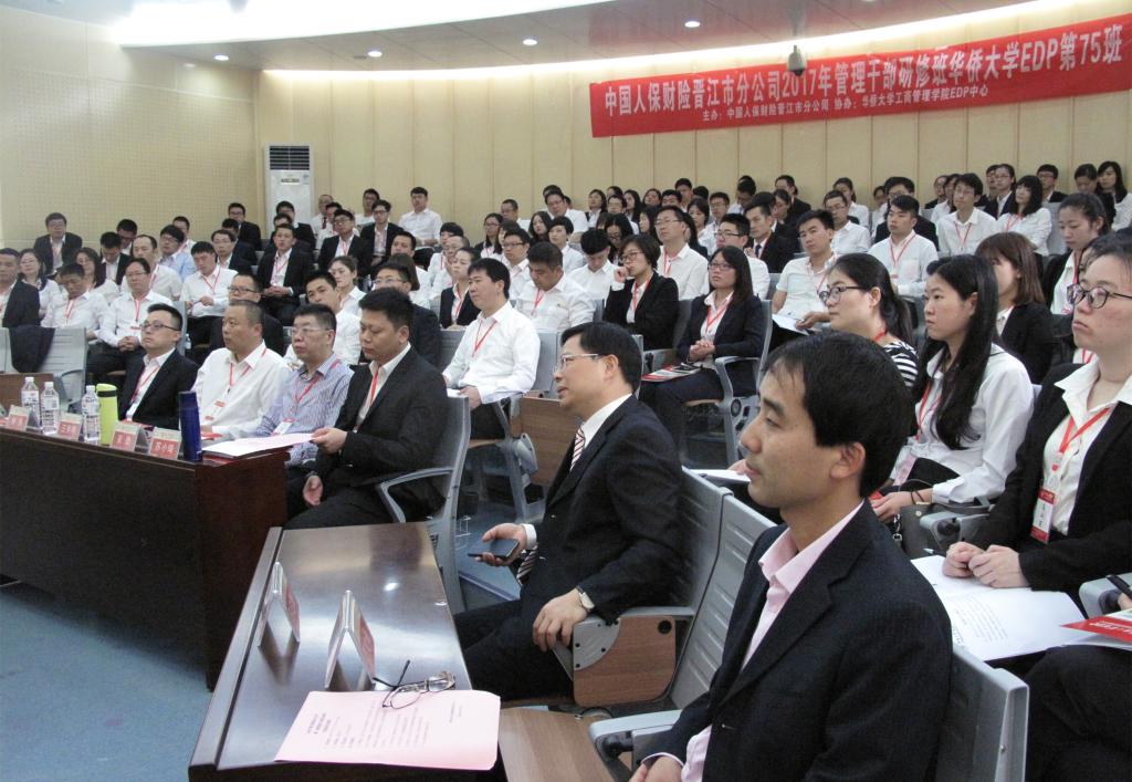 4月8日, 中国人保财险(PICC)晋江分公司2017年管理干部研修班在华侨大学算治馆开班。本届研修班由中国人保财险晋江分公司主办,华侨大学工商管理学院EDP教育中心协办。