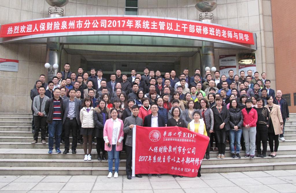 2017年3月25日上午,人保财险泉州市分公司2017年系统主管以上干部研修班开班典礼在华侨大学陈守仁经管楼12楼会议室举行。本期培训班由中国人民财产保险股份有限公司泉州市分公司、华侨大学工商管理学院EDP教育中心联合主办。