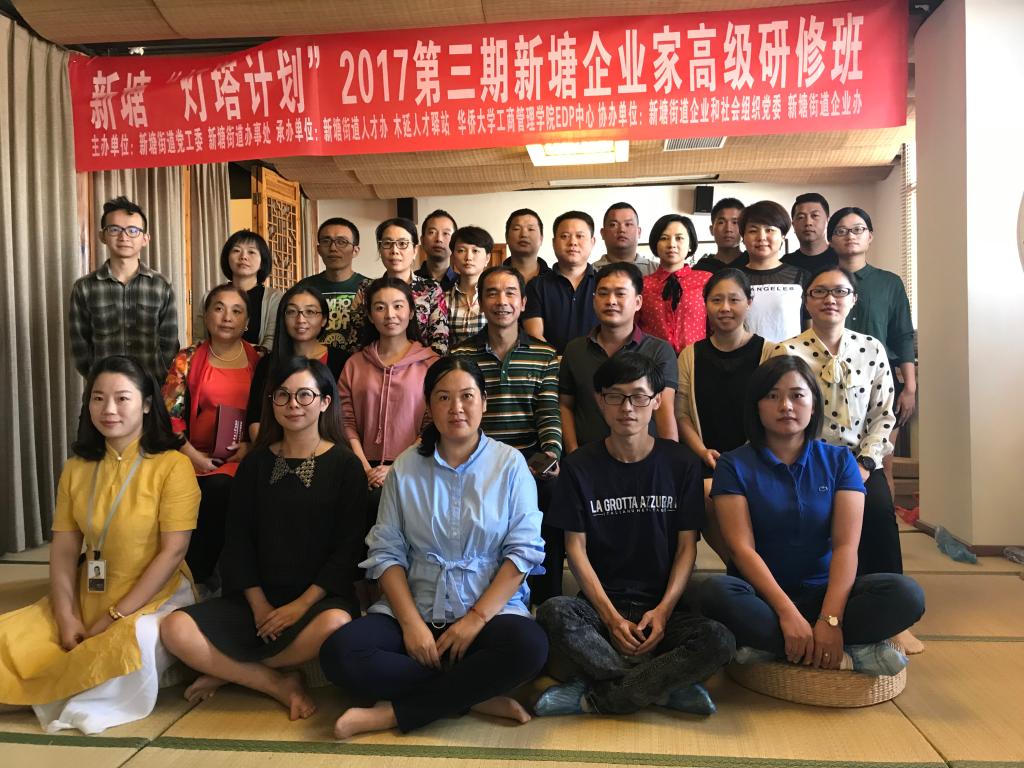 10月27日,2017第三期新塘企业家高级研修班于10月27日上午在木延文创体验中心成功举办。此次研修班由新塘街道党工委、新党街道办事处主办,新塘街道人才办、木延人才驿站、华侨大学工商管理学院EDP中心承办,新塘街道企业和社会组织党委、新塘街道企业办协办,研修班主题为提升新塘街道中小企业经营管理、创新驭变和应对风险的能力。