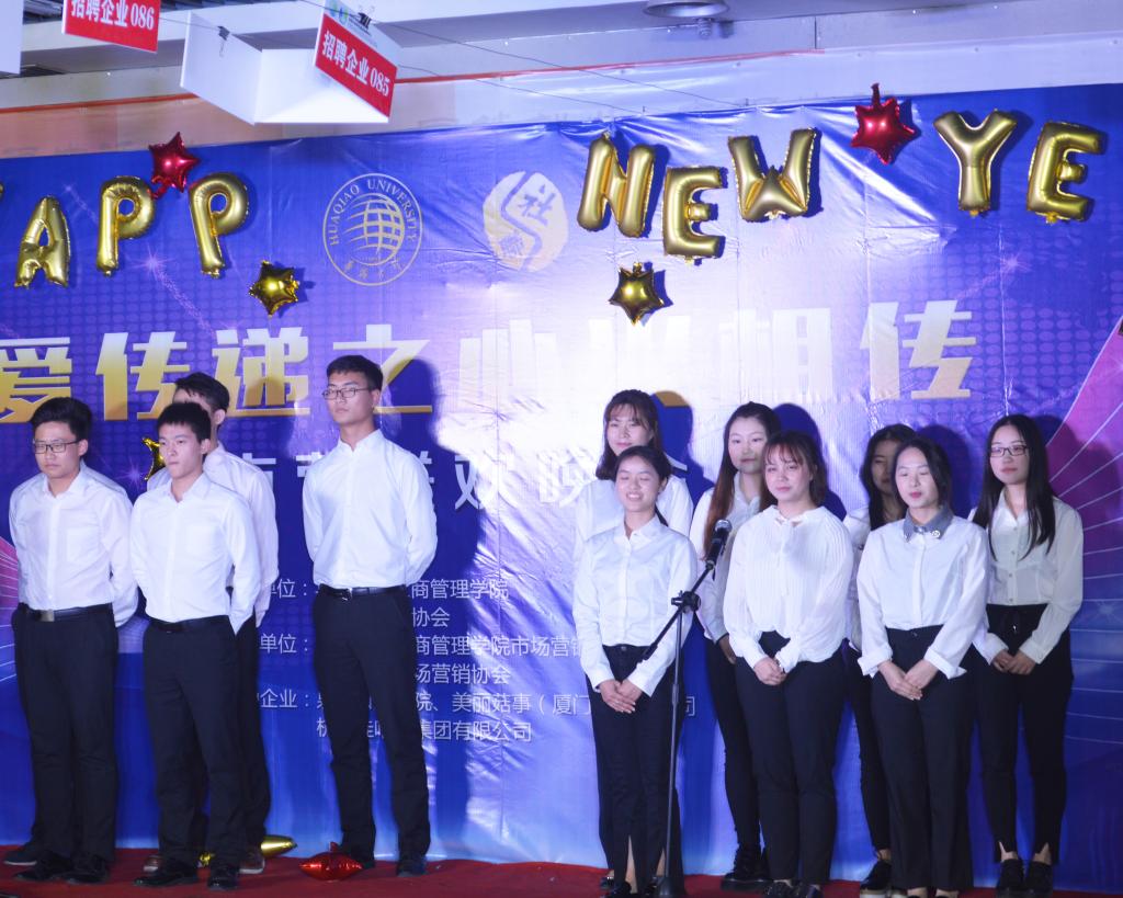 12月29日,工商管理学院市场营销系携手泉州微公益协会举办市营联欢晚会。泉州微公益协会执行会长肖发兴,常务副会长兼秘书长肖建福,泉州市力标慈善基金会副理事长、泉州微公益协会副会长杜炎煌,泉州微公益协会常务副秘书长丁长火、李灿斌,工商管理学院党委书记姚培生,博士导师吕庆华,市场营销系主任陈钦兰、部分教师及学生参加本次晚会。