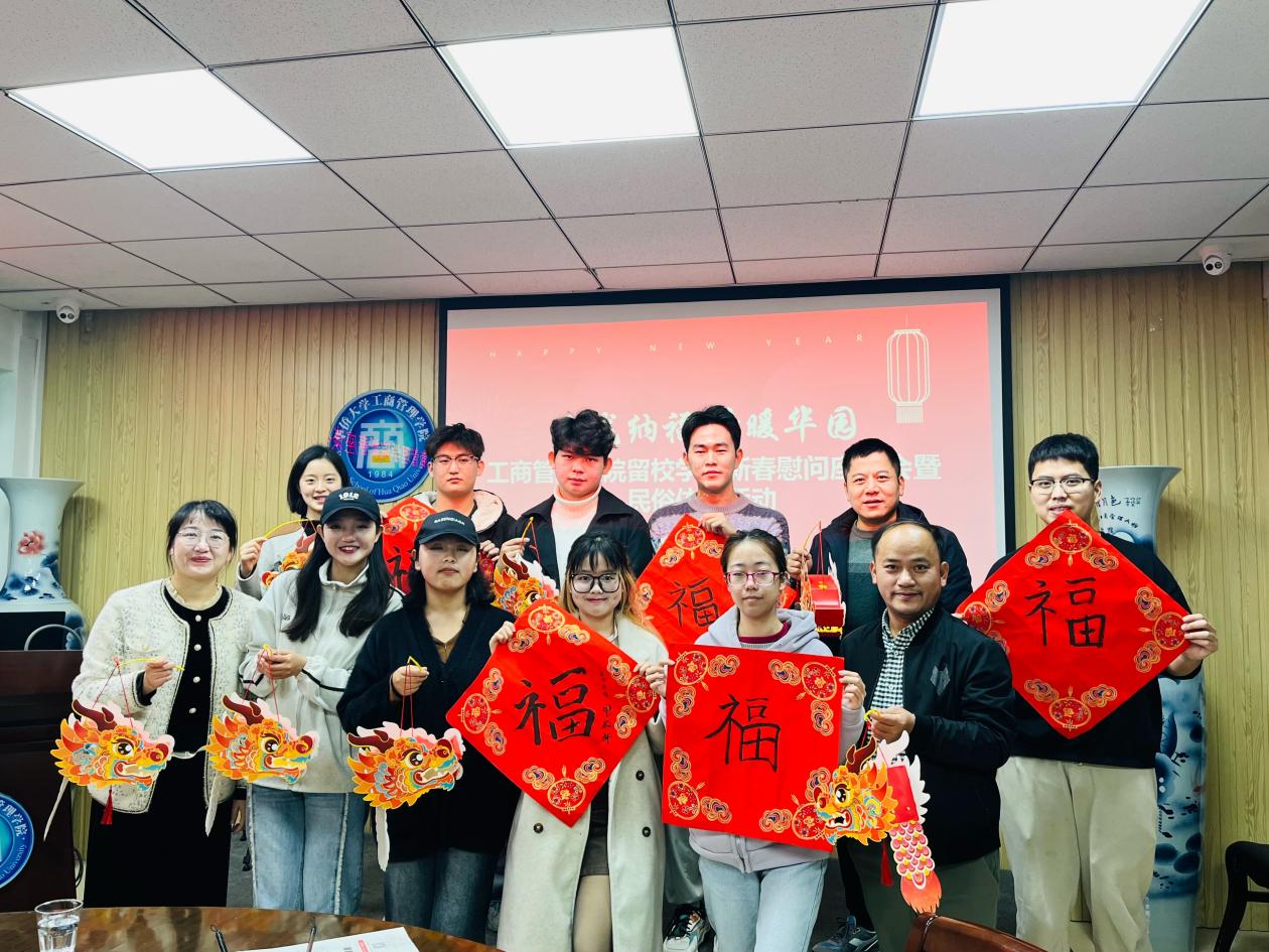 学院党委书记李俊杰和辅导员参加新春慰问座谈会,了解同学们的假期规划并发放慰问礼包。“这是我第二年留在学校过年,虽然不能和家人团聚,但在学校也能体验到浓浓年味,这种热闹和喜庆的感觉不亚于在家中,也让我更加珍惜在学校的每一天。”来自马来西亚的留学生吴柔晔如是说。
