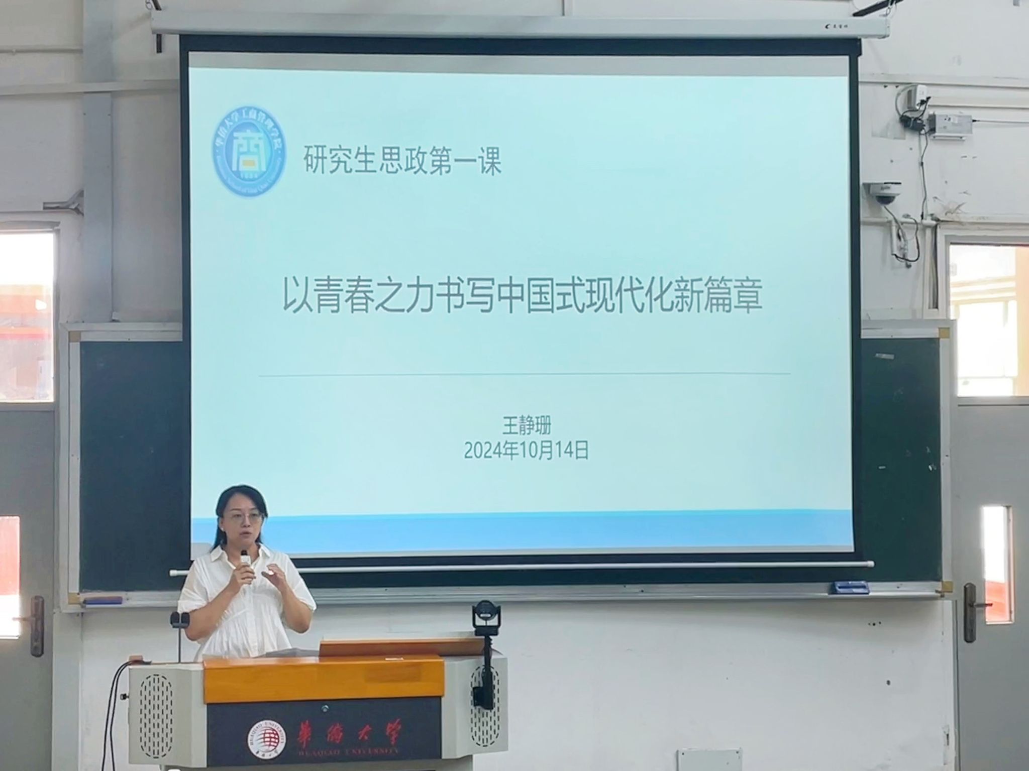 为进一步细化立德树人根本任务,充分发挥思政课的教育引领作用,10月14日,工商管理学院研究生思政第一课于祖杭楼1-6顺利举办。学院党委副书记王静珊老师以“以青春之力书写中国式现代化新篇章”为主题向研究生骨干授课。