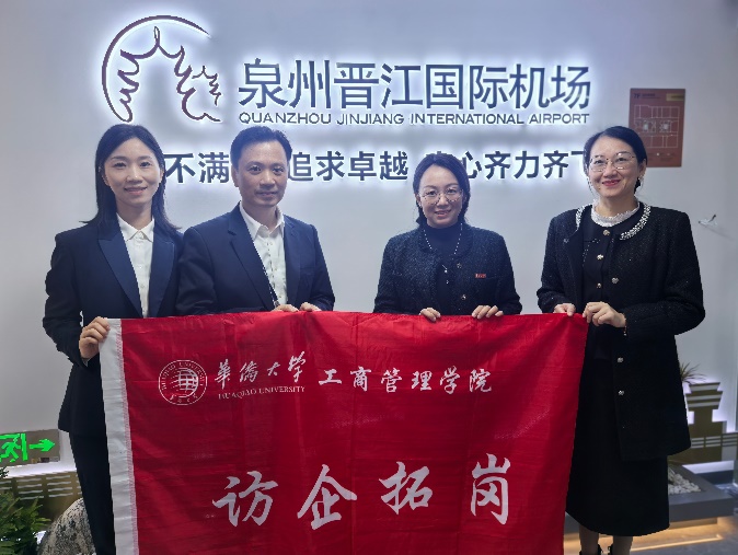 12月12日,华侨大学工商管理学院与泉州晋江国际机场股份有限公司(以下简称“泉州晋江国际机场”)共建的“大学生创新创业实践基地”授牌仪式在泉州晋江国际机场办公楼7楼隆重举行,标志着双方校企合作正式启动。泉州晋江国际机场党委委员、副总经理杨德立,人力资源部经理陈艺,华侨大学工商管理学院党委副书记王静珊,学生工作办公室主任谢俊,以及相关人员共同出席了仪式。
