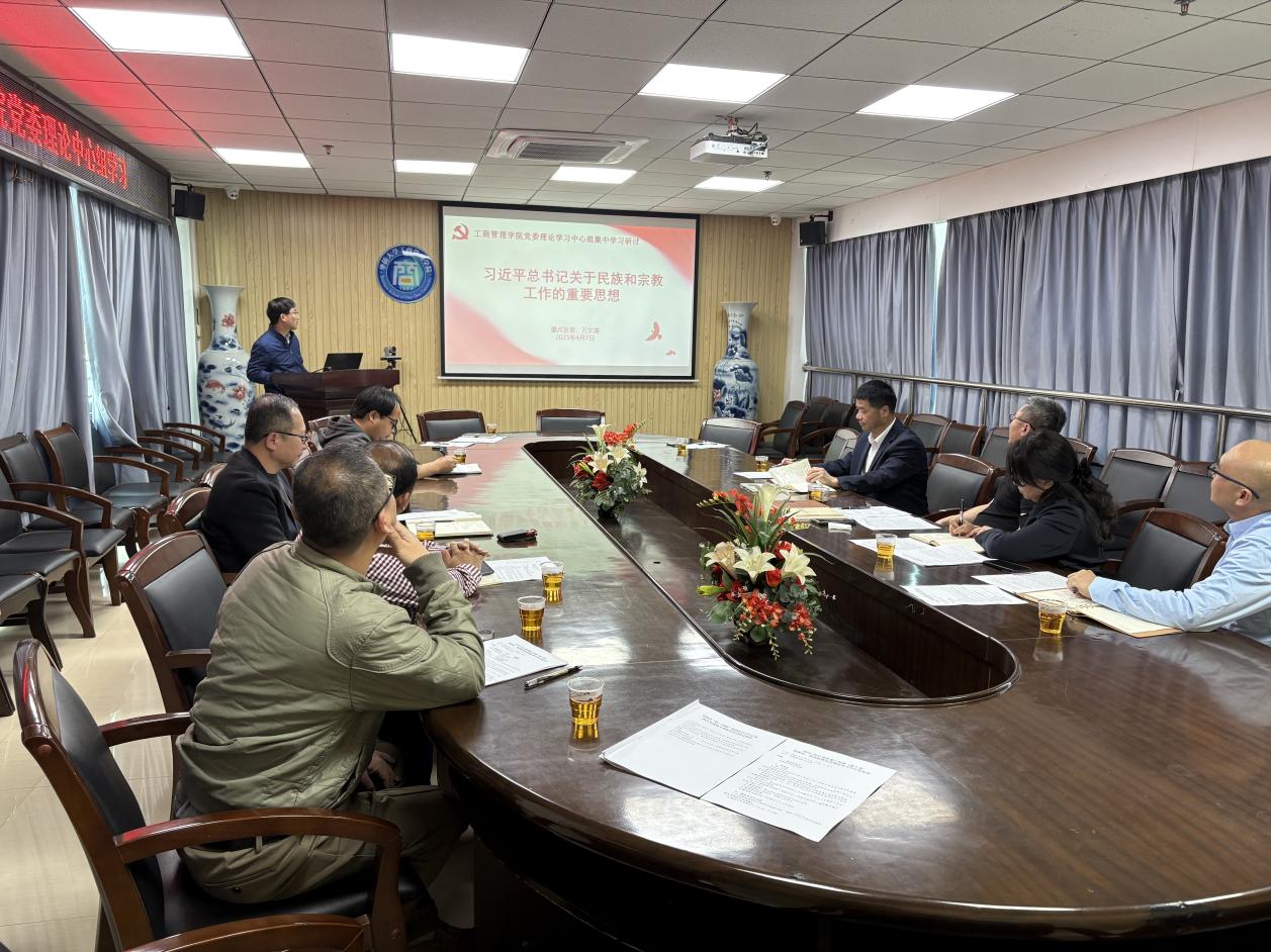 4月7日上午,工商管理学院党委召开统战工作专题研讨会,重点学习习近平总书记关于加强和改进民族工作的重要思想,党委理论学习中心组成员参加学习,万文海副院长主讲。