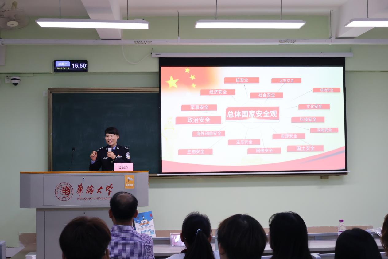 讲座伊始,吴警官便从战略高度阐释了国家安全的基石地位,强调其不仅关乎国家长治久安,更与每位同学的切身利益和未来发展息息相关。她系统梳理了涵盖政治、经济、文化、社会、网络等多元一体的国家安全体系,引导师生深刻认识维护国家安全的极端重要性和现实紧迫性。同时,她通过宣传视频、现场互动等方式进一步提升学生维护国家安全的责任感与行动自觉。