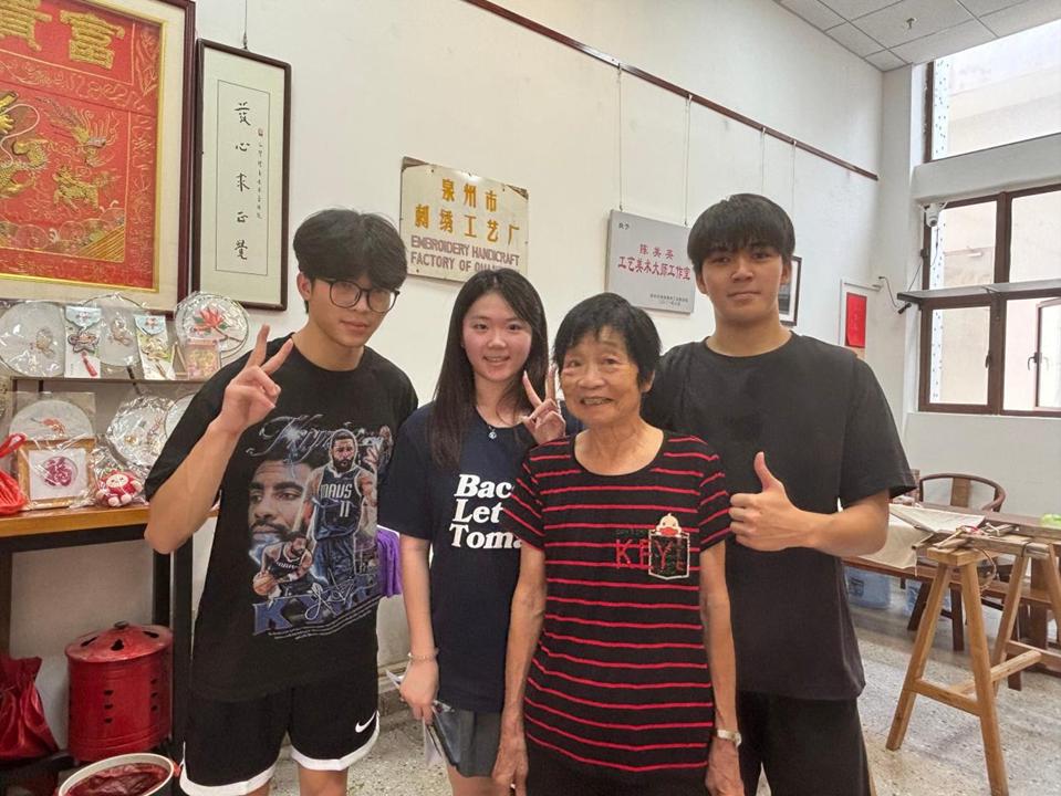 图2 泉州金苍绣技艺工艺美术大师陈美英与学生合影