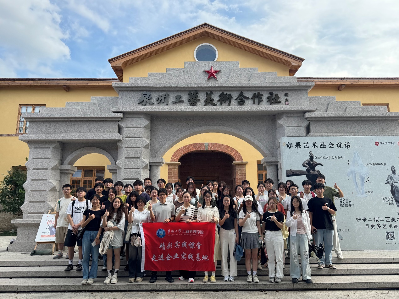 2025年6月29日,工商管理学院人力资源管理系开展2024级本科生小学期“精彩实践课堂走进企业实践基地”系列活动。由李小轩老师、袁国书老师及助教郑芷晴(2025届本科毕业生)带队,组织44位人力资源管理专业学生代表走进泉州工艺美术合作社,围绕非物质文化遗产项目与传统技艺的传承现状,开展实地访谈与深度调研,结合课堂所学探究传统手工艺与人力资源管理、文化创新之间的关系。