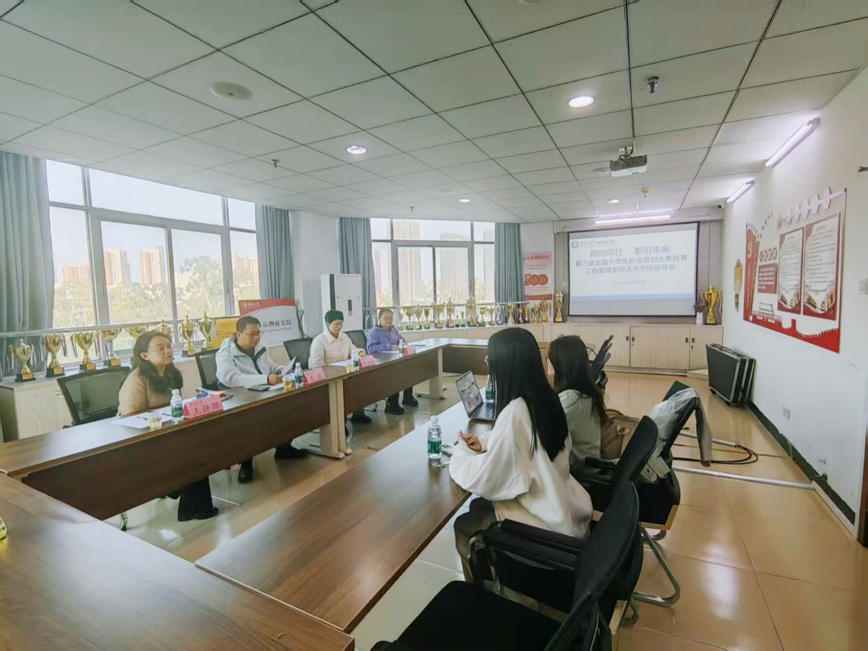 2025年12月4日下午,一场特别的“指导会”在经管楼710举行。为帮助同学们更好备赛,工商管理学院为入围“第三届全国大学生职业规划大赛”校赛的选手们,组织了一场面对面的专场指导。学生处副处长王雷、学院党委副书记王静珊、人力资源管理系教授陈初昇、副教授胡三嫚及辅导员彭波老师齐聚一堂,为同学们“把脉开方”。