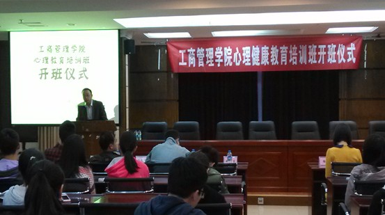 2013年11月26日下午工商管理学院心理教育培训班开班仪式暨第一讲在经管12楼成功举办。我院党委总书记姚培生、党委秘书贾振宇、学工办主任徐文福老师、辅导员徐翠、曲学进老师、12级工商7班班主任林春培老师、13级工商2班班主任周飞老师、13级信管1班班主任李海林老师出席了本次活动。
