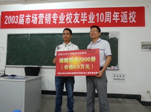 8月24日下午,我院迎来了2003届市场营销专业校友毕业十周年返校并回馈母校的捐赠活动,校友们向工商管理学院捐赠图书2000册,价值6.5万元。工商管理学院院长孙锐教授、学院党委姚培生书记、发展规划处处长张向前教授、市场营销系主任陈钦兰教授共同接待了此次返校的校友。