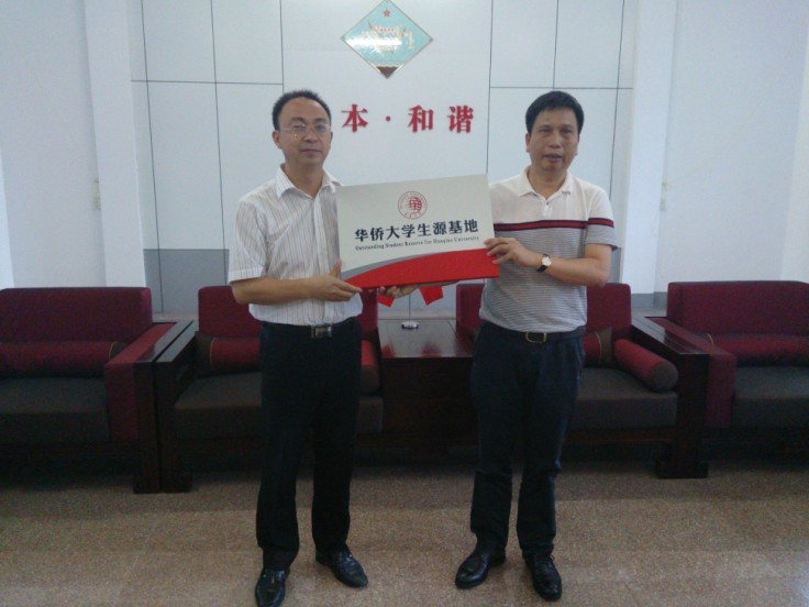 6月25日上午,工商管理学院党委书记姚培生代表学校与汕头市澄海中学校长林惜平签订了生源基地建设协议,并代表学校向该校颁授了“华侨大学生源基地”牌匾。颁授仪式结束后,姚培生与该校副校长、华大78级数学系校友李镇永及相关师生进行简短的座谈。