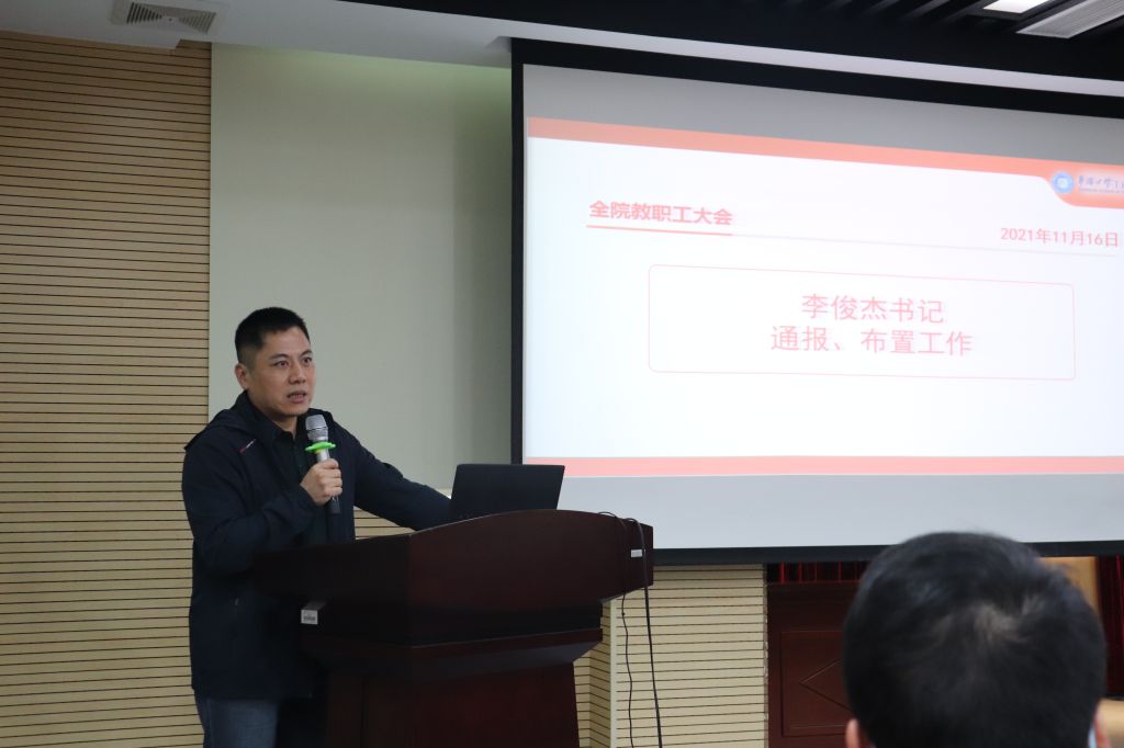 教职工大会上,李俊杰传达并带领大家学习了学校第六次党代会精神、党的十九届六中全会精神,就师德师风建设、文明校园建设、毕业生工作、丰泽区第六届人大代表选举等有关工作进行详细部署。
