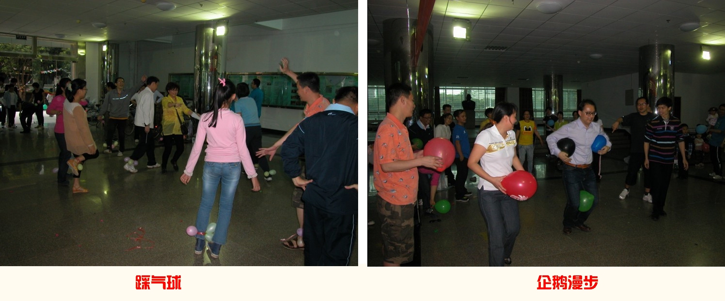 真正使运动会达到了高潮的项目是团体比赛,三女两男的组合,以系为单位,拉拉队的欢呼声一浪高过一浪。踩气球和企鹅漫步都与气球有关,最后市场营销系获得了踩气球冠军;行政代表队获得了企鹅漫步冠军。虽然团体赛由于裁判不足、规则不够完备,竞赛场面略显一点杂乱,但无论谁胜谁负,大家都共同收获了欢笑、收获了友谊、收获了放松的心情。