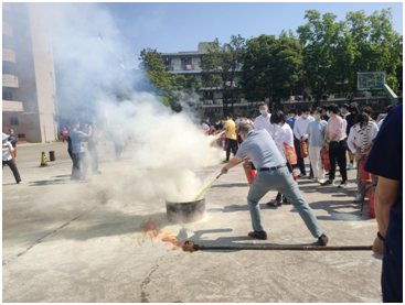 应急演练分为四个科目进行,一是组织经管楼办公楼(含实验室)上课师生、办公人员实施应急疏散;二是组织开展油盆灭火培训,讲解防火自救逃生知识;三是组织灭火器使用、消防栓、水带灭火操作培训;四是观摩微型消防车扑灭初期火情。
