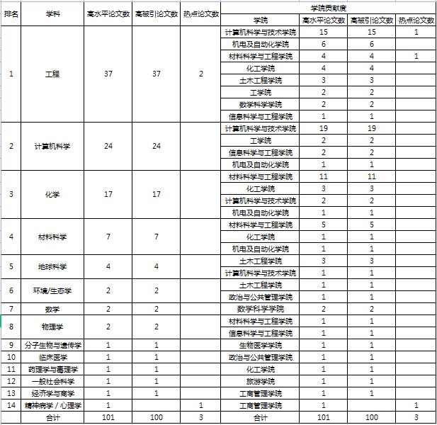 注释:美国科学情报研究所推出的基本科学指标数据库(Essential Science Indicators,简称ESI)是当今世界范围内普遍用于衡量科学研究绩效、跟踪学科发展趋势、判断学科发展水平、评价研究机构国际学术影响力和竞争力的重要工具之一。是基于Web of Science(SCIE/SSCI)所收录的全球12000多种学术期刊1000多万条文献记录而建立的计量分析数据库。ESI热点论文(Hot Paper)指的是某ESI学科领域最近两年发表的论文,最近两个月里被引用次数进入全球前1‰的论文。ESI高被引论文(Highly Cited Paper)指的是某ESI学科领域最近十年发表论文,其被引次数排在前1%的论文。高被引论文和热点论文统称为高水平论文(Top Paper)。ESI根据学科发展的特点设置了22个学科领域,以近10-11年为1周期对全球所有大学及科研机构的SCI、SSCI论文(文献类型为Article和Review)及其引用情况等进行统计和比较,按论文总被引次数排列,总被引次数排名前1%的大学与科研机构方可进入ESI学科排行,每2个月更新一次。