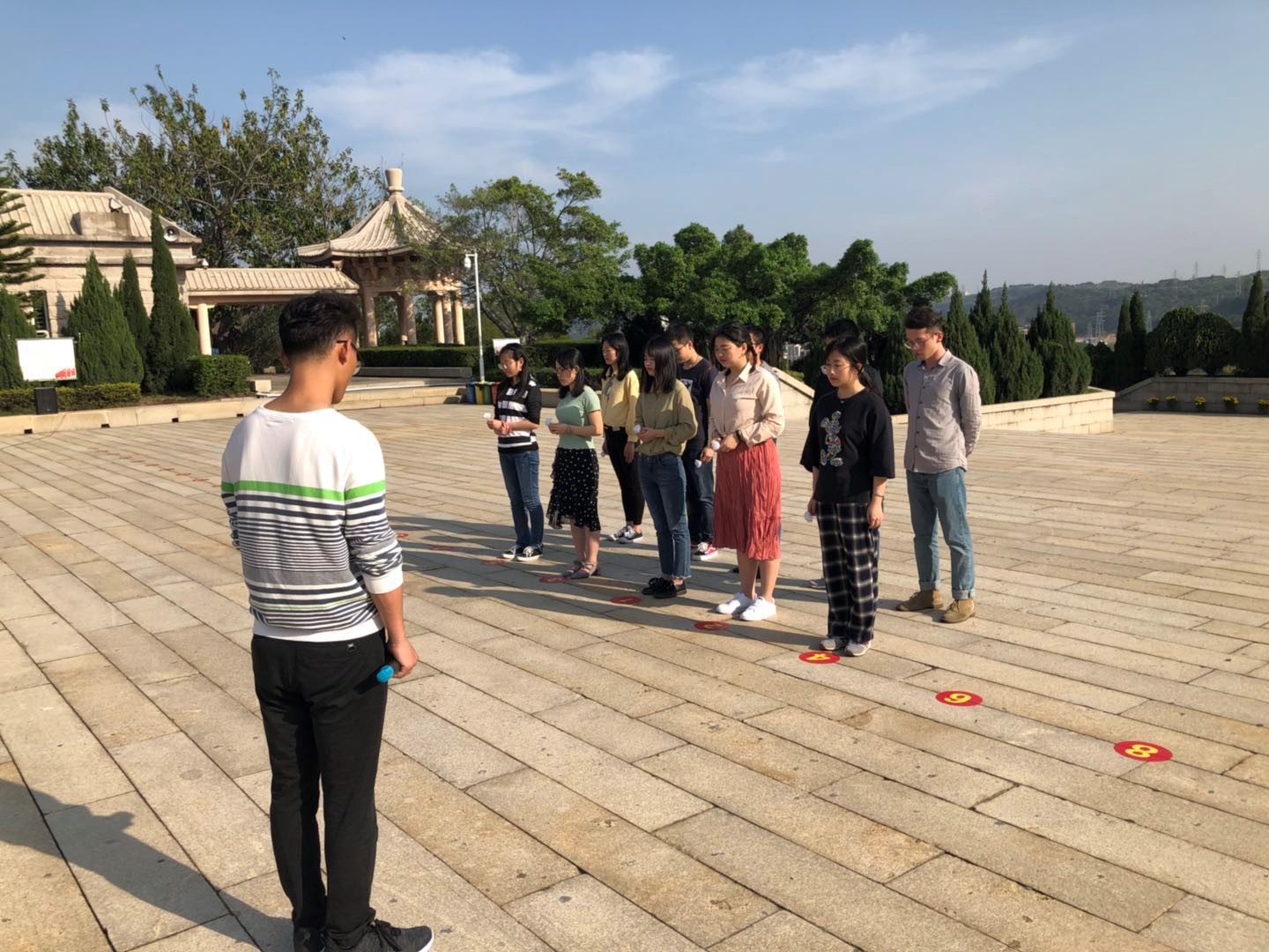 支部全体党员同志们在南大门集合,一起出发前往烈士陵园。到达烈士陵园后,在志愿者的引导和讲解员的介绍中,大家有序地参观了烈士纪念馆。随后,全体同志穿过长梯来到了烈士纪念碑,面向烈士纪念碑有序站成两排,唱国歌,向烈士默哀一分钟。之后由书记贾芳芳和副书记王艺翔向烈士敬献花圈,全体同志依次从左往右顺时针缓步绕行,瞻仰烈士纪念碑,以表达对先烈的缅怀之情,并敬献鲜花。