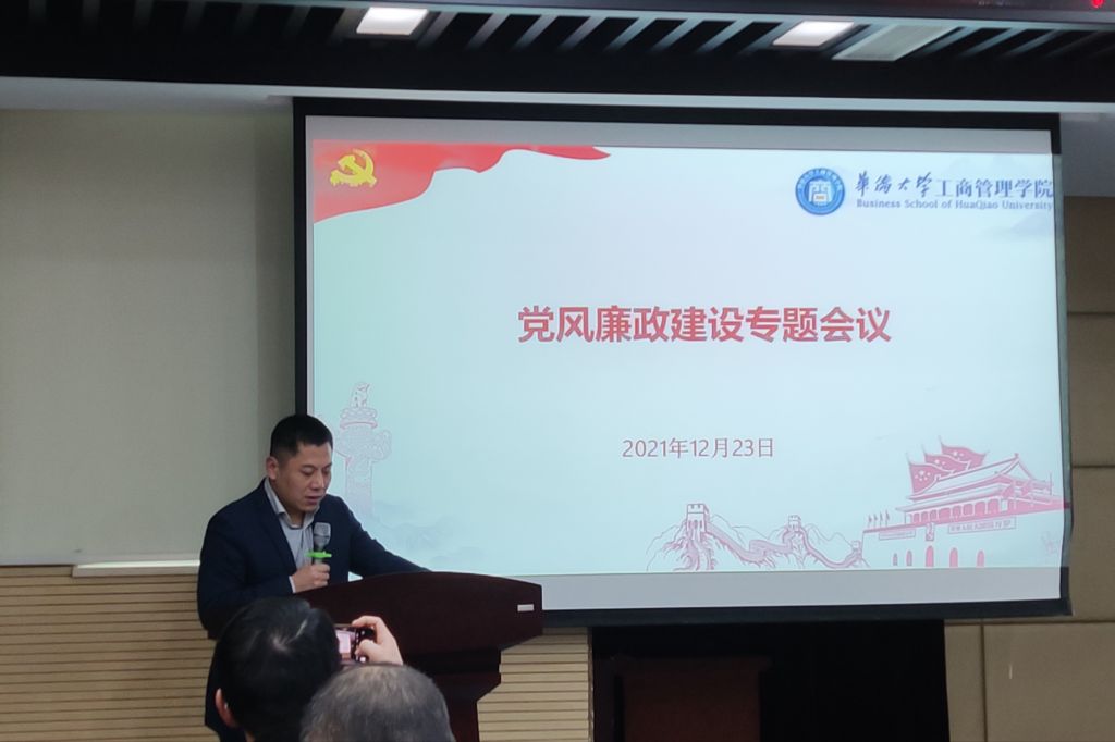 12月23日下午,工商管理学院党委在经管楼12层会议厅,召开党风廉政建设专题教育会。会议由学院党委书记李俊杰主持,学院党政领导及全体教职工出席会议。