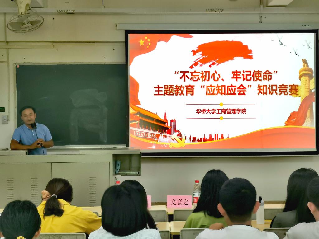 10月15日下午,工商管理学院“不忘初心、牢记使命”主题教育“应知应会”知识竞赛在经管3-2教室举办。团委书记文竞之,党委秘书徐文福出席本次活动,各党支部、团支部学生代表参与此次竞赛。