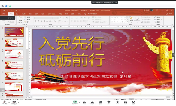 陈祥南在会议中介绍了四大方面:认识中国共产党、坚定理想信念、学院党建概况、如何入党。一是认识中国共产党,为新生介绍党的性质、理想、宗旨、中共党史的基本脉络等基本情况;二是坚定理想信念,青年人需争当先进,报效祖国,以实际行动迎接党的二十大;三是学院党建概况,要向身边的优秀学长学姐学习,让优秀成为习惯,让信仰点亮人生;四是如何入党,包括入党流程、入党条件、申请书撰写及提交等注意事项。
