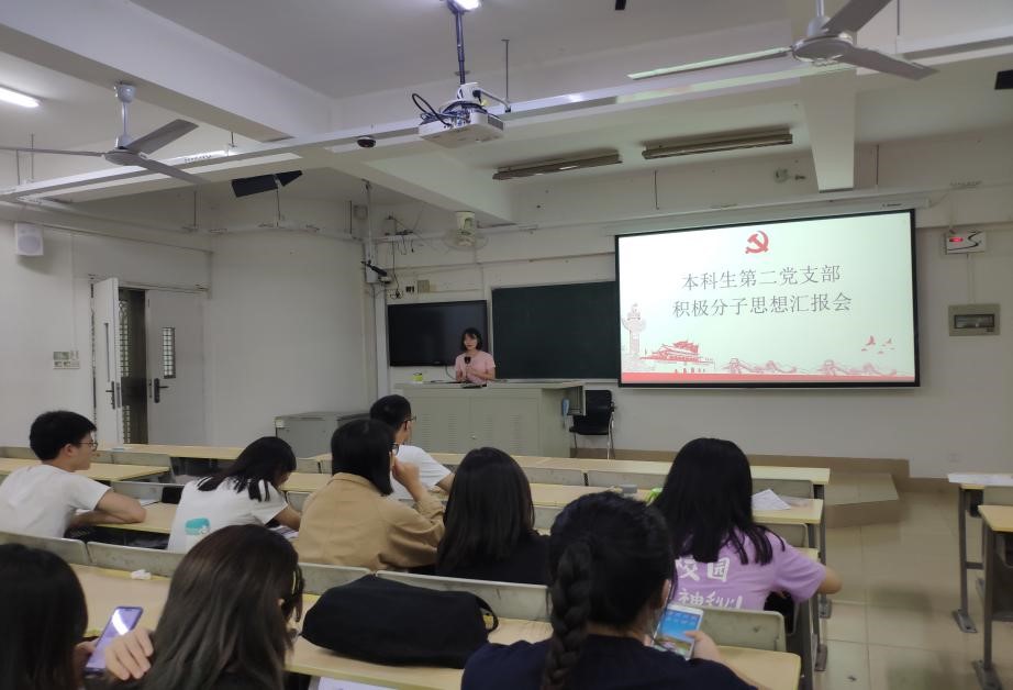 2019年6月18日,工商管理学院第二党支部预备党员和积极分子思想汇报会在经管3-1举行,党支部书记薛亚泽主持会议。薛亚泽表示此次思想汇报会,旨在了解积极分子在思想、学习、生活和工作上的动态,以便党组织更好地对入党积极分子和预备党员进行考察,希望入党积极分子能够明确入党目的,端正入党动机,做到思想上入党,加强与培养联系人的交流。预备党员要加强政治理论学习,将理论运用于实践,争取早日成为一名正式的中国共产党党员。