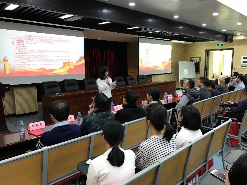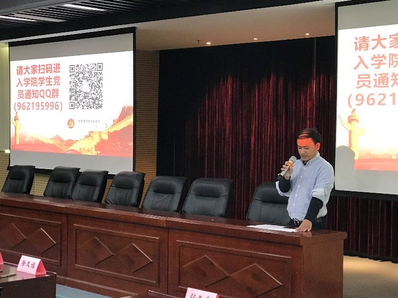 徐文福对学生党员考核办法进行了解读。他提出,在从严治党的背景下首先不断加强党员政治理论学习,提高党员队伍素质,学院将通过组织理论读书会、讲座、观看教育片、实地考察等方式组织党员进行学习。同时,要积极践行为同学服务的宗旨,要求非毕业生党员至少要在一般学生工作平台和党建工作平台中的一个做好为同学服务的工作。在生活中一方面要积极参加组织生活,另一方面也要在日常生活中发挥先锋模范作用,对于因违纪受到处分的实行一票否决制度。最后,徐文福还就“学习强国”学习要求等工作做了布置和安排。